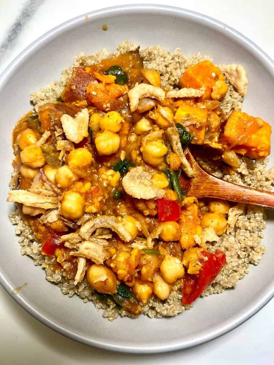Inspired by the bold, earthy flavors of the Middle East, this dish brings together creamy chickpeas, sweet roasted vegetables, tomato paste, and a fragra…